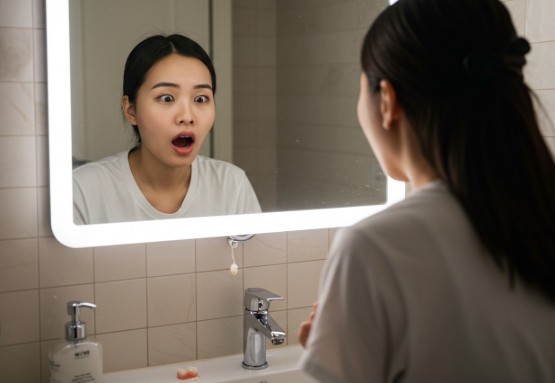 거울을 보는데 앞니가 빠져버린 자신을 마주하게 되는 꿈, 상상만 해도 아찔하죠.